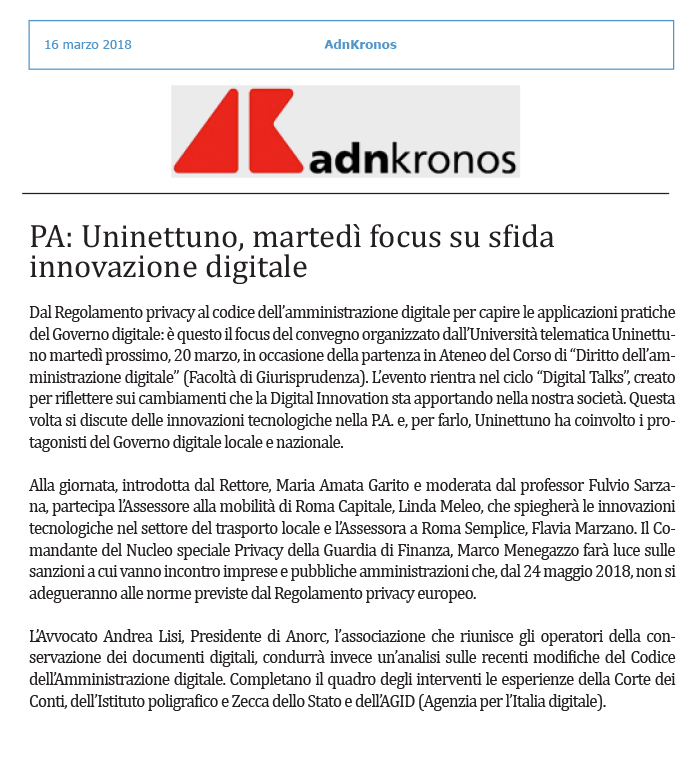 PA: Uninettuno, martedì focus su sfida innovazione digitale